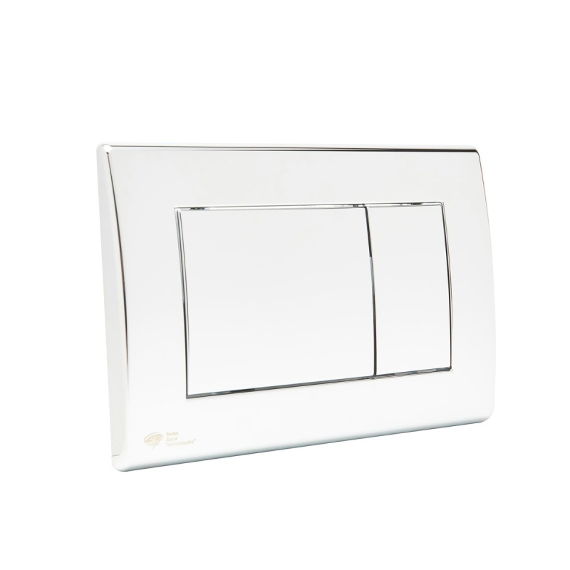 Pulsador Cuadrado Swiss Aqua Technologies SATAT21 CROMO BRILLO, moderno pulsador empotrado para cisterna de la marca SAT, con doble descarga que permite expulsar el agua completa o parcialmente según lo requiera, con opción de instalación horizontal o vertical para crear aun más armonía con la decoración de su baño. Fabricado con materiales resistente e innovadores para garantizar el uso diario y siendo también más prácticos de limpiar. Medidas: 24,7cm x 16,5cm.