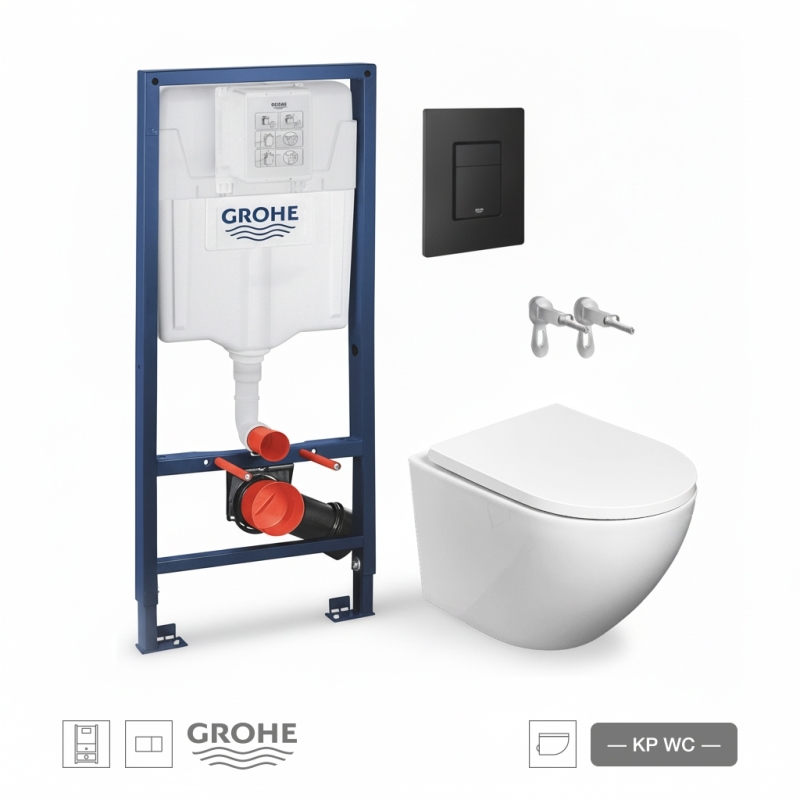 BASTIDOR GROHE PACK CISTERNA EMPOTRADA Y PULSADOR NEGRO MATE CON INODORO SUSPENDIDO ROUND SMART 52cm TOR 3 TAPA ENVOLV MARCA KP