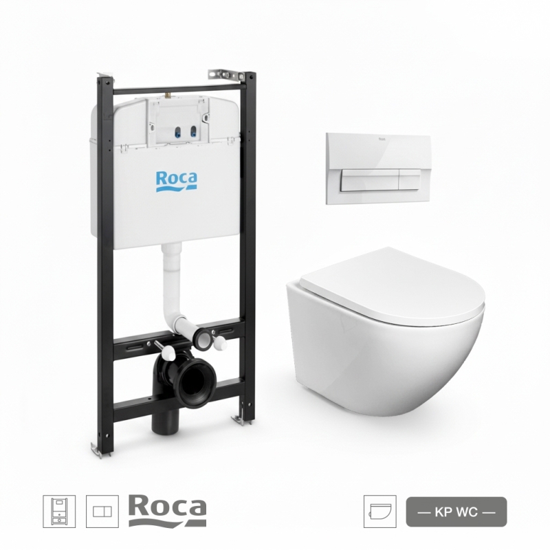 BASTIDOR ROCA ACTIVE PACK CISTERNA EMPOTRADA Y PULSADOR BLANCO NEW CON INODORO SUSPENDIDO ROUND SMART 52cm TAPA ENVOL. MARCA KP