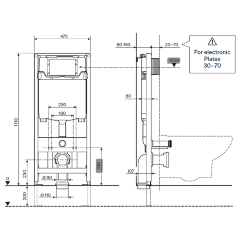 Cisterna empotrada DUPLO WC ONE - Bastidor con cisterna empotrable de doble descarga para inodoro suspendido.